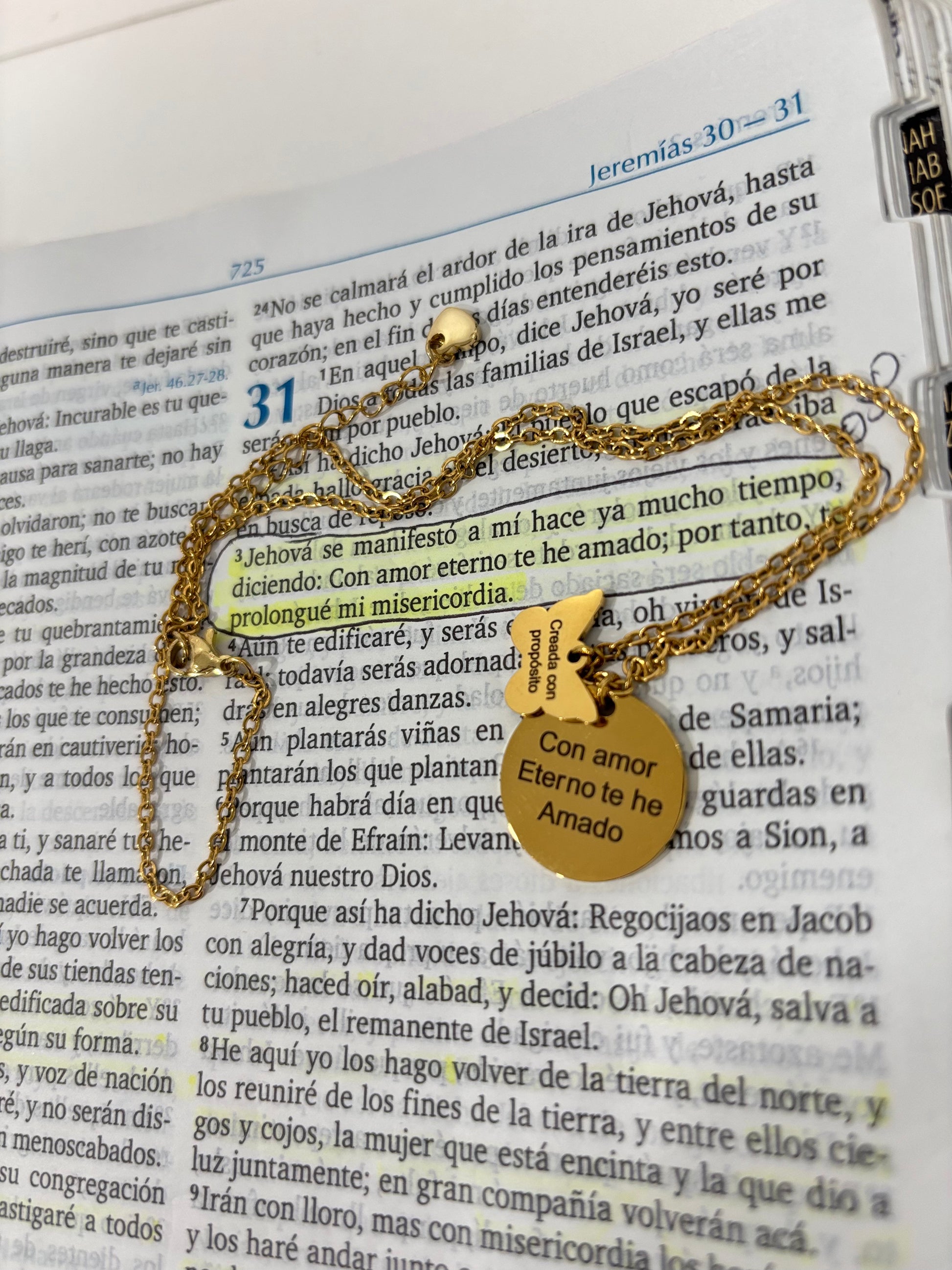Con amor eterno te he amado , es el amor y promesa de Dios para nosotras. Esta cadena está inspirada y diseñada para que lleves y recuerdes la promesa de Dios .No importa las circunstancias que pasemos el amor del padre siempre estará ahí.