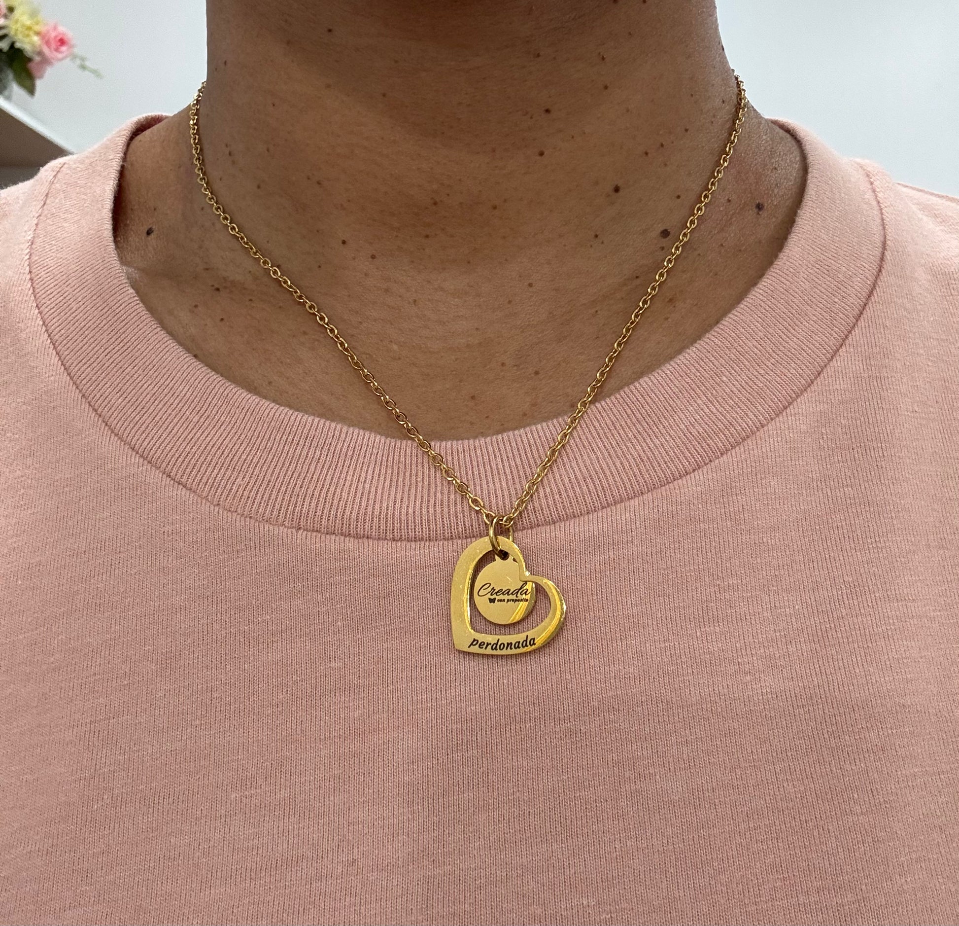 Esta cadena te recuerda que eres perdonada en el . Que aunque no somos perfectas su amor y su perdón están disponibles para ti . Lleva una prenda que resalte tu belleza y la identidad que tienes en el.