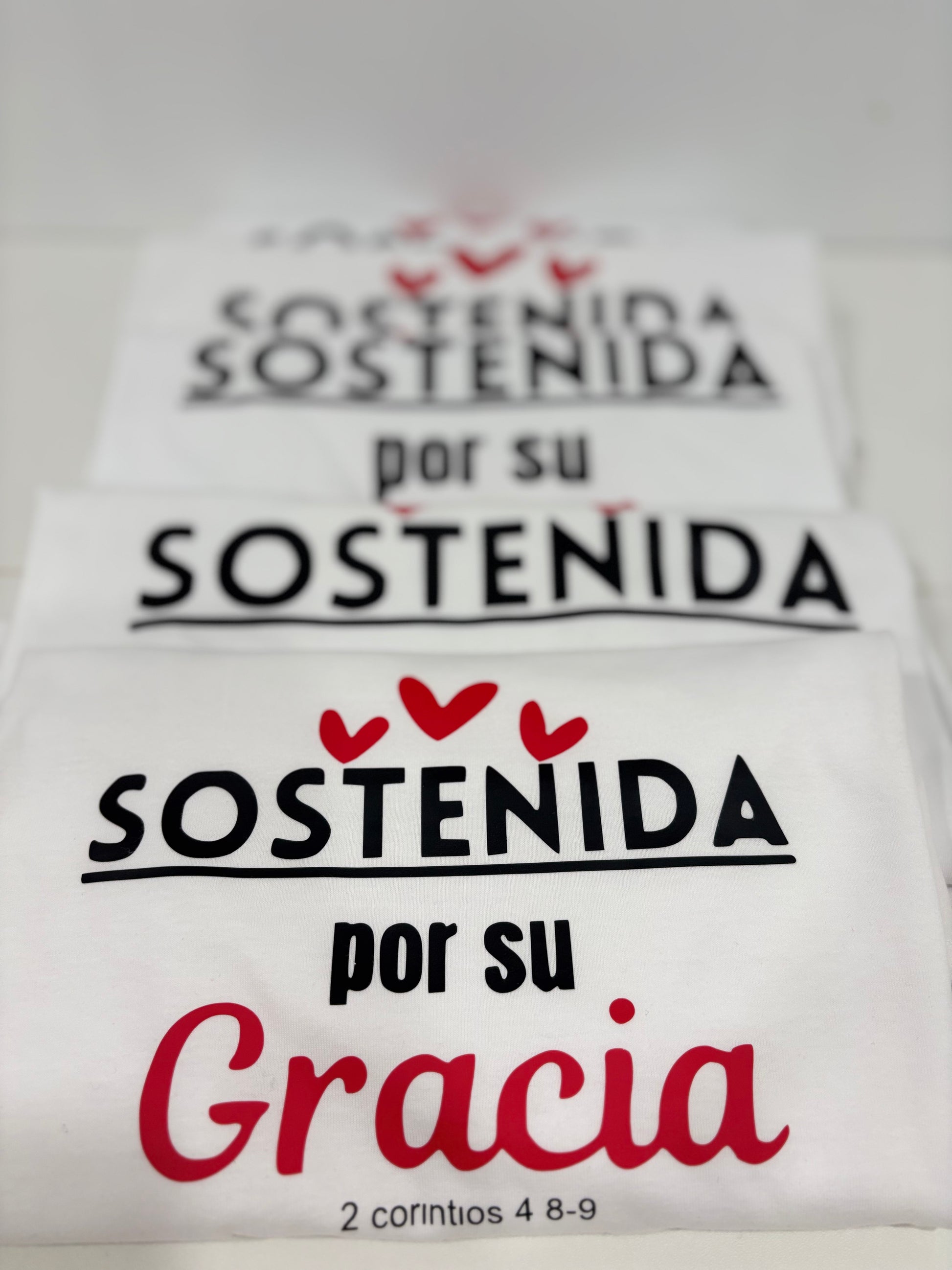 Camiseta,Sostenida por su Gracia. 2-corintios 4:8-9